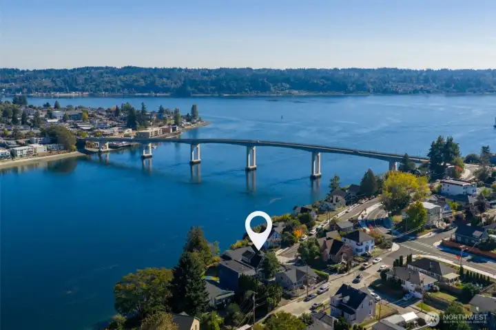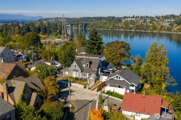Iconic turn of the century, ship captains multi-plex just 60 feet from the waterfront, steps to Evergreen Park, and walking distance to the ferry, shipyard & amenities. The vacant top-floor 1BD/1Bath shines with 180 degree water views, granite counters, new appliances & fresh finishes. On the main level, a 1BD/1BA with picture windows captures stunning water & bridge views, alongside a charming studio unit with a classic Murphy bed. The lower studio offers a bright, open layout with updated kitchen and living space framed by more water views. Onsite coin-op laundry adds convenience. A rare mix of history, lifestyle, and income potential is offered with this iconic water-view 4-plex in a vibrant, walkable location.