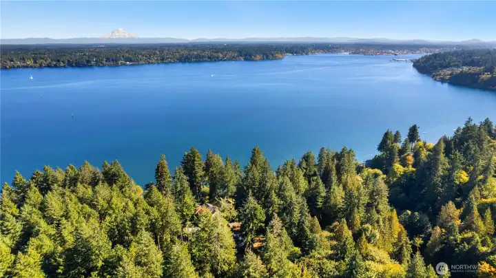 Experience Cooper Point living at its finest. This timeless mid-century modern home offers stunning Puget Sound and Mt. Rainier views, surrounded by 2.5 acres of private Northwest beauty. Enjoy peaceful walking trails, mature evergreens, and spacious patios perfect for entertaining or quiet mornings. Inside, sunlight fills the open living spaces with large windows, fireplaces, and mid-century character throughout. Ownership shows with a new roof, gutters w/ leaf guards, full septic system, fresh paint, new AC system, and new carpet. The property includes a 2-car garage + carport, RV parking, and room to garden or play. Minutes from shopping, dining, and the waterfront. Your own private retreat, move-in ready and waiting to welcome you home.