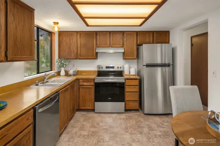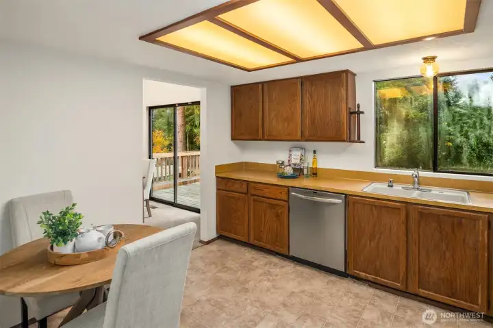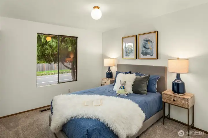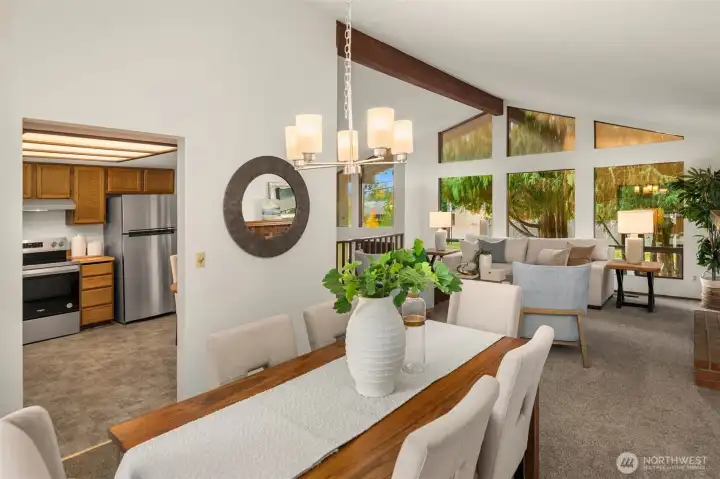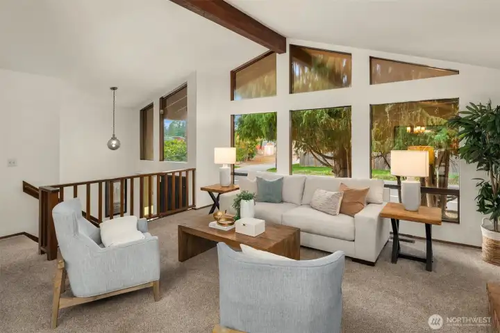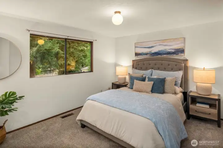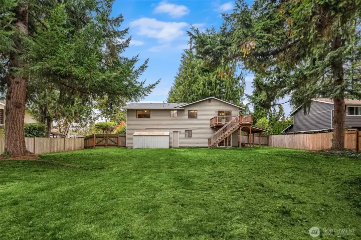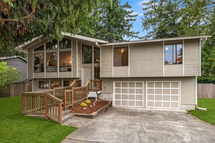 Spacious 3-bed, 2.5-bath split-level home with 1,929 sq ft of stylish updates! Enjoy vaulted ceilings, extra-large windows, and abundant natural light upstairs, plus a second living/rec room with slider access to the fully fenced backyard. Entertain on the large deck and take in the oversized lot. Freshly updated with new carpet, flooring, paint, appliances, lighting, and more—including a stunning master bath with walk-in shower and built-in bench. Cozy up with wood-burning fireplaces on both levels. Minutes to I-5, Mill Creek shopping, groceries, and just 2 blocks from Martha Lake!
