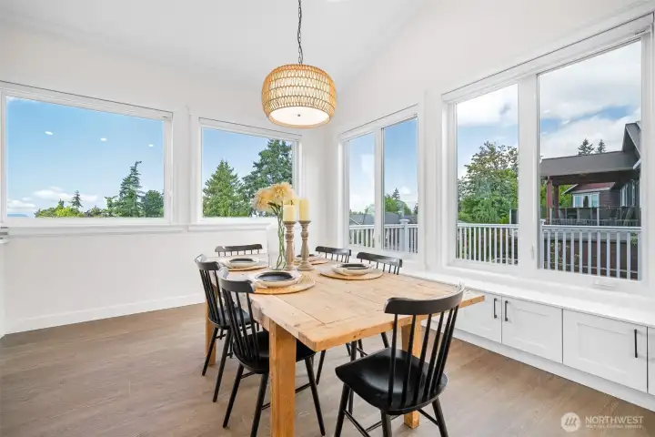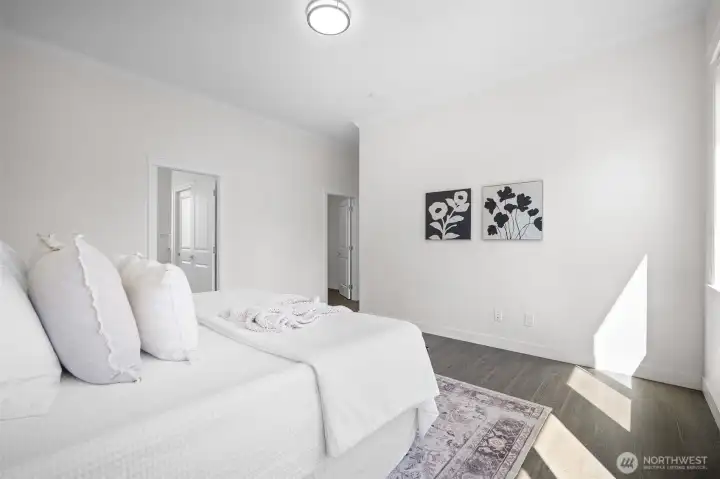 Modern luxury in a prime Bellingham location! Stunning custom-built home, short walk to Lake Whatcom, Whatcom Falls Park, trails, Barkley Village, and downtown. Soaring 15’ ceilings and expansive windows fill the open-concept living and dining areas with natural light, flowing seamlessly to a spacious deck—perfect for relaxing or entertaining. The chef’s kitchen features quartz countertops, stainless steel appliances, a walk-in pantry, and a large island with seating and storage. The main-level primary suite is a serene retreat with a spa-inspired bath and oversized shower. A second en-suite bedroom offers great flexibility. Downstairs includes a home office, media room, and game room. High-efficiency heat, A/C, and spacious 3-car garage.