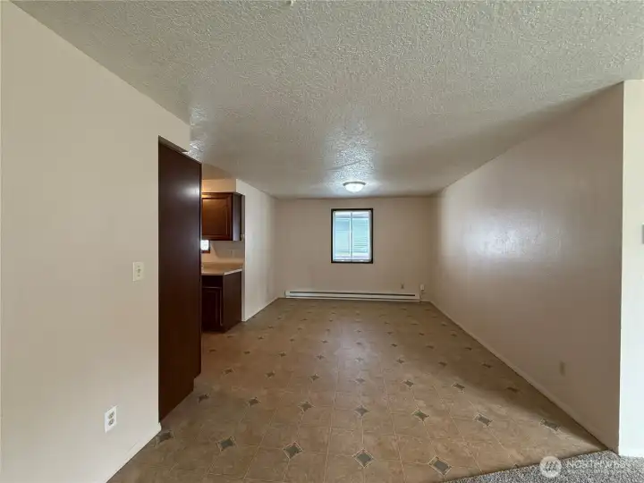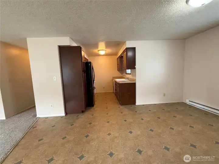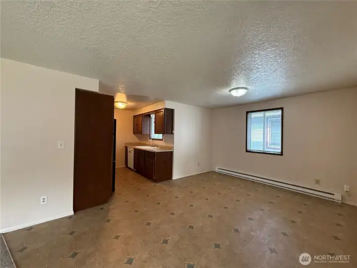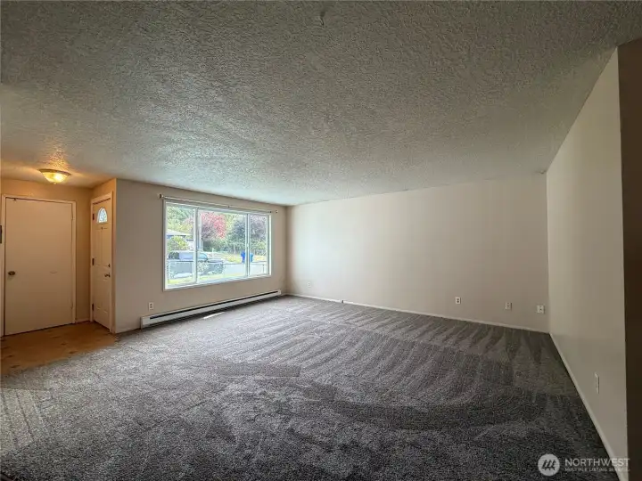 Welcome to this inviting 3-bedroom, 1-bath home offering 1,156 sq ft of comfortable living space. The open-concept design connects the living and dining areas, creating a bright, spacious atmosphere ideal for everyday living or entertaining. Enjoy brand-new carpet throughout, along with a large front window that fills the living room with natural light. The bathroom features a convenient shower/tub combo, and a hall closet adds extra storage. Enjoy the front deck?that is inside the fully fenced front yard.