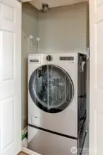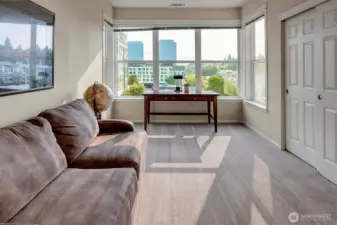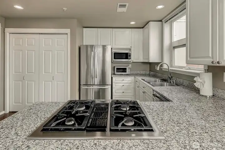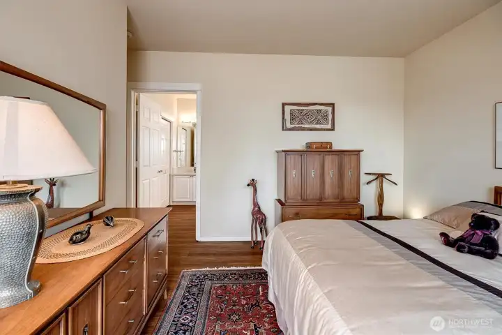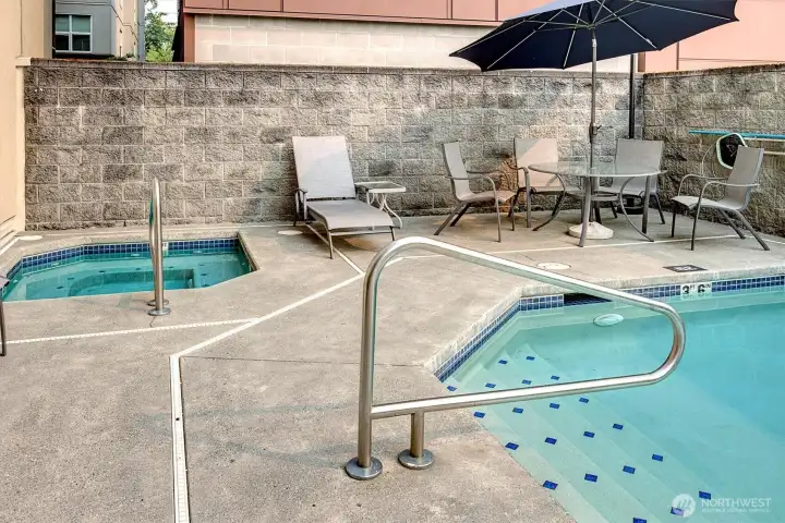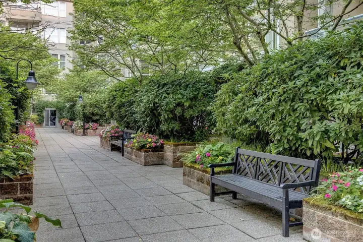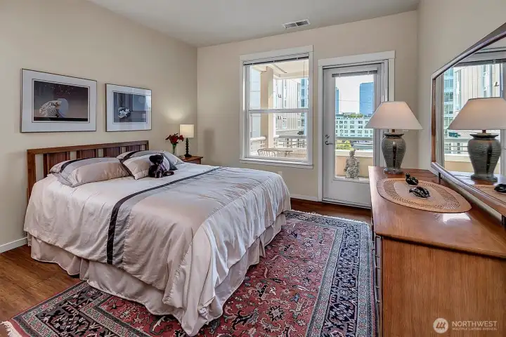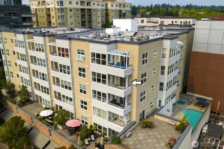 Impeccable corner unit in the popular McKee. Formal marble entry, new carpeting & custom lighting. 10ft ceilings, 2 private balconies & A/C. South facing for maximum natural light w/views of the Cascade mtn range, Mt. Rainier & a bit of Meydenbauer bay. Both bdrms are lrg & offer ample storage. Living rm features custom built in book shelves & window seating. Kit w/eating space has granite countertops, stainless appliances w/gas cooktop & pantry. Secured bldg w/2 deeded/secured parking spaces + individual storage rm. Excellent amenities include outdoor pool & hot tub, exercise room, community club rm & rentable guest suite. Well run, pet friendly building w/on site mngmnt. Enjoy fine restaurants, bars & boutiques right out your front door.