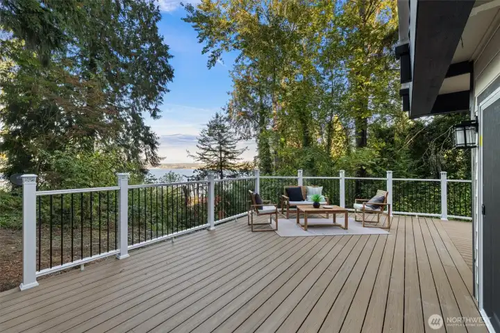 Nestled at the end of a quiet dead-end street, this fully remodeled residence offers exceptional privacy and captivating views of Lake Washington. Over $600K in renovations showcase meticulous craftsmanship throughout, from soaring ceilings and panoramic windows to designer finishes that fill the home with light and style. Entertain on expansive decks or unwind in tranquil interiors with two kitchens, two primary suites with three more bedrooms offering flexibility for every lifestyle. Surrounded by fruit trees and lush greenery, this serene retreat features dual driveways with ample parking and recent upgrades including a new roof and siding—just minutes to Burke-Gilman Trail, lake access, and top-rated schools. Move- In Ready.