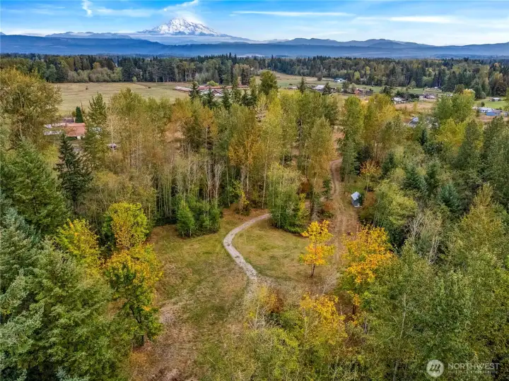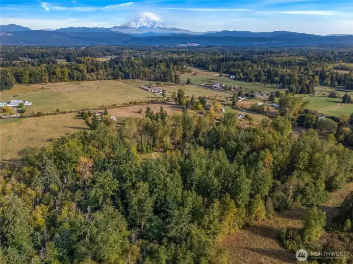 Discover your perfect Pacific Northwest retreat on this stunning 10.43-acre property! Featuring a serene, private setting with an impressive Mount Rainier view, this land is ready for your dream build. A seasonal creek runs through the property, adding to its natural beauty. Approved septic design for a 5-bedroom home, private well with pump, and heated well house are already in place. Power is on-site with a 400-amp electrical setup. A scenic 1,000+ ft gravel driveway leads to a secluded clearing surrounded by towering trees and charming apple trees. Peaceful, private, and ready for your vision—bring your builder and start your next chapter here! View video for full tour!