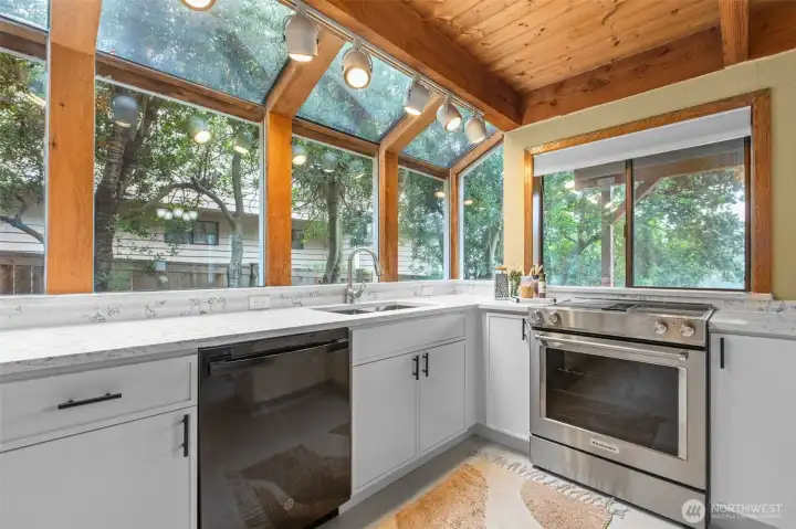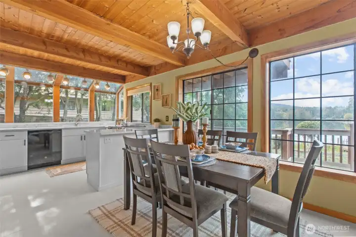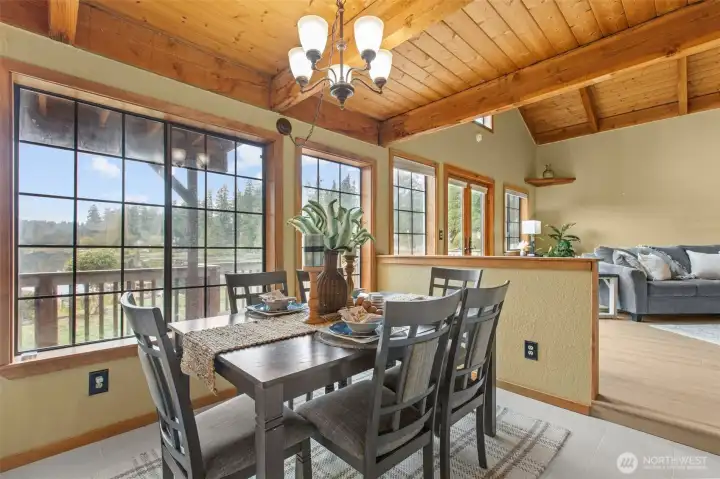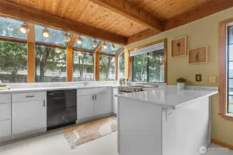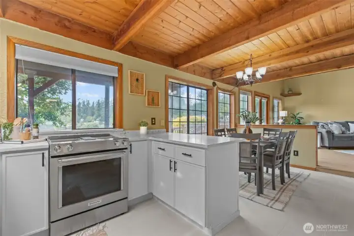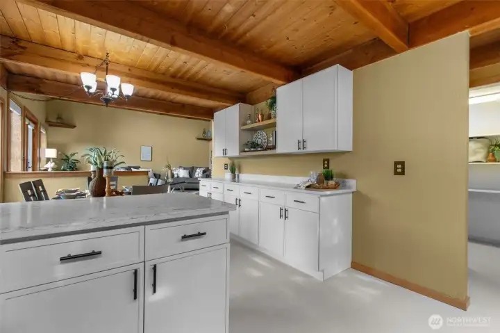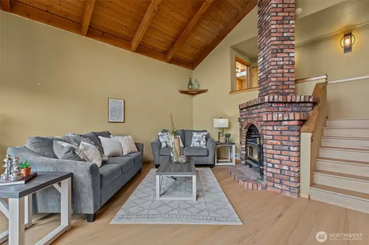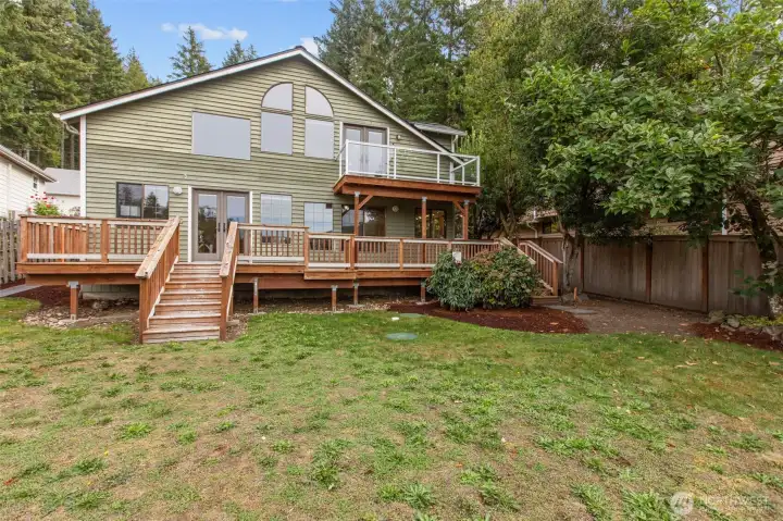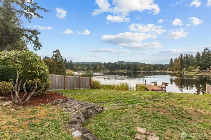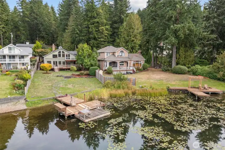 Embrace lakefront living on tranquil Wildcat Lake! This beautifully updated home features vaulted ceilings and a striking brick fireplace anchoring the spacious living room. The renovated kitchen and bathrooms offer modern comfort, while the private primary suite boasts its own balcony overlooking the water. Enjoy your own private dock for kayaking, paddle boarding, or casting a line on this rainbow trout–stocked lake. The driveway boasts space for RV parking and a large covered carport perfect for guest parking or extra storage—all just minutes from Silverdale shops, Bremerton, and the Naval Yard.