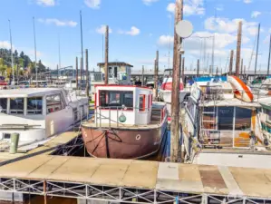 Welcome to this one of a kind 1940 Naval trawler conversion. Enjoy a piece of history surrounded by beautiful views of the capital, bay and nearby wildlife. Located in Olympia's West Bay Marina, this 1 bed 1 bath live-aboard boat would make a fantastic short term rental or a great place to escape for a couple nights! Tugboat Annie's is only steps away, and Oly's waterfront Farmers market and downtown only minutes away- you can't beat this location! Updated exterior paint, new LVP flooring when you first enter the cabin, nice size living space with walk-in pantry/closet. Bask in beautiful sunny days on the topside watching marine life float by. Boat can also be relocated!