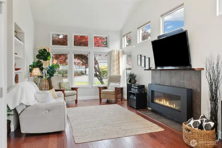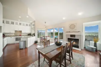 Nestled in a serene, upscale neighborhood, this main-level living gem is the ONE! Its inviting floorplan boasts soaring ceilings, abundant natural light, & gleaming hardwood floors. Two cozy fireplaces warm spacious living areas, perfect for relaxing evenings. Step onto the expansive deck w/a remote awning to savor stunning golf course, Ludlow Bay & Olympic Mountain views. The sleek, updated kitchen dazzles with style. Spacious primary suite offers private back porch access and features a luxurious, renovated bath w/a large walk-in shower. Upstairs, discover two airy guest rooms, a full bath, and an office with a view. Impeccably maintained to include fresh exterior paint. Steps from miles of trails, golf, marina & Bay Club. Welcome Home!