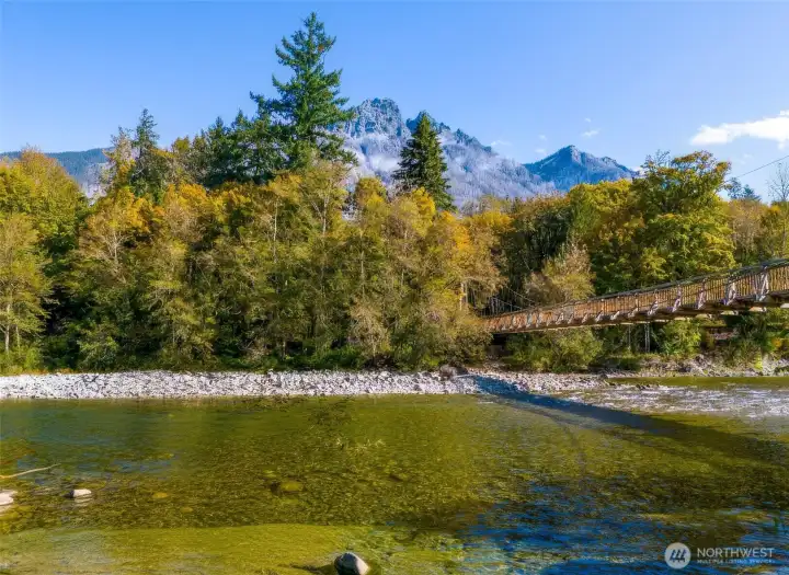 Own a piece of Skykomish Riverfront! Nestled beside Baring’s iconic suspension bridge, this one-third-acre lot with 100 feet of frontage offers a front-row seat to the rushing Skykomish River and dramatic Mt. Baring views. The perfect basecamp for your Cascade Mountain adventures—ideal for a tiny home, RV site, or potential to build the riverfront cabin you’ve always dreamed of. Enjoy fishing, kayaking, and swimming right from your private beach. Water available via deeded shared-well rights. Just 20 minutes from Stevens Pass and surrounded by the best of Sky Valley recreation—don’t miss this rare opportunity!