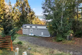 Wake up to sweeping views of Hood Canal where every sunrise paints the water in vibrant color. This peaceful 2-acre haven in Rustic Ridge includes two gently sloped lots sold together, offering privacy, flexibility, and potential. The upper lot features a furnished 2021 Quail Ridge/Forest Park tiny home—fully serviced with water, power, and septic—making it an ideal weekend retreat or continue using it as an active Short Term Rental for some additional cash flow!. A large deck, firepit, fenced yard, and garden beds invite relaxation and creativity. The lower lot features separate water/power, protects your view and provides endless options—RV pads, a future home, or lush tiered gardens. Come experience the magic of this hilltop paradise!
