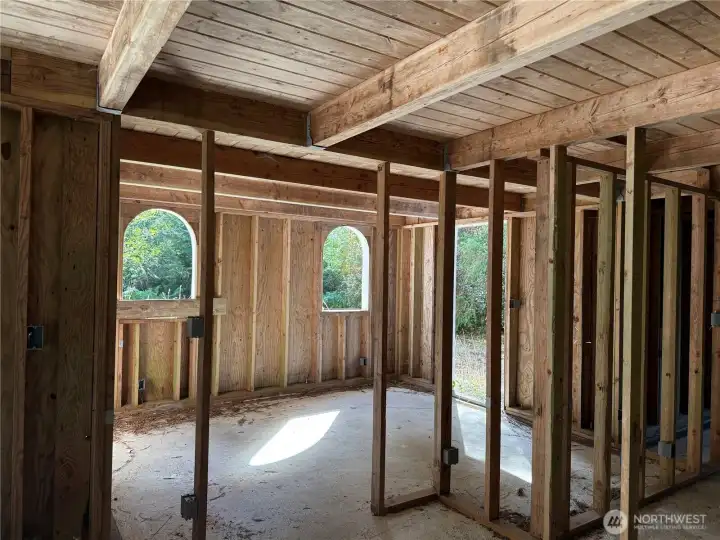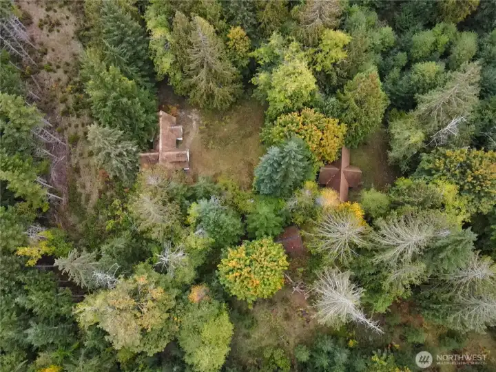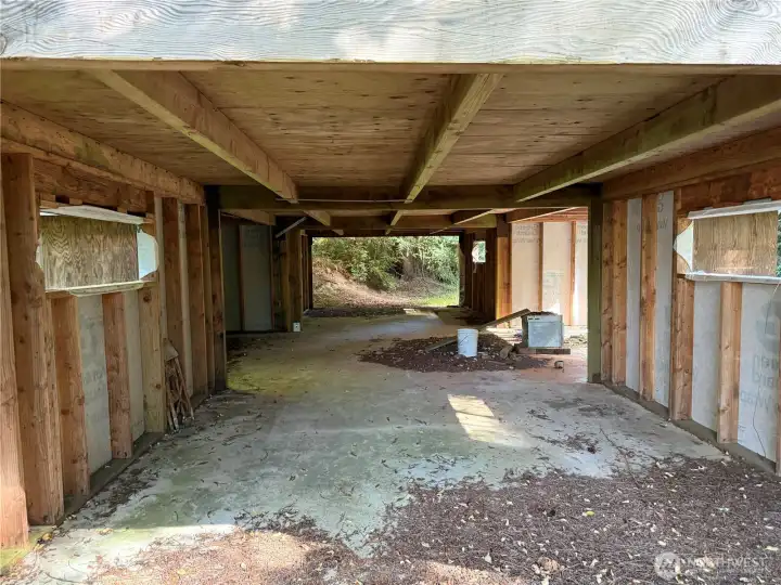 Oh, boy, this is an interesting property! Almost 47 beautiful acres on magical Harstine Island, with the start of a wonderful homesite. Sellers drilled a well & and installed a septic system in the mid-90's, and put an 1,802sf home structure on the property that is unfinished- no doors or windows, just a concrete foundation with walls and a stucco exterior, still in the studs inside. Two outbuildings - one complete (shop) & one unfinished. Power is nearby in the driveway, or consider going off-grid! The serenity here is amazing. The driveway meanders through heavily-timbered property, over a beautiful creek. You will feel like you are a million miles away from town...