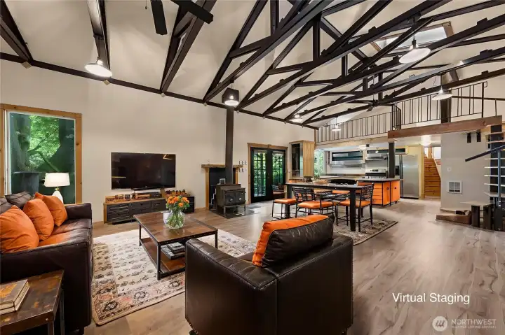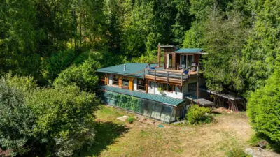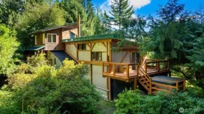 This one-of-a-kind property abuts the Mt. Si Trail and is truly enchanting! Each of the two dwellings are distinct in style. The first is a Northwest contemporary design with vaulted architectural rafters, built for easy living. The second is larger with high timber ceilings and lovely mountain views. From the large upper terrace listen to the gentle sounds of your waterfall, watch hummingbirds dance through the magical gardens while eagles soar above. The daylight basement has a greenhouse annex running the full length. It has grapevines and is great for longer season gardening. There's a finished geodesic dome for meditation, creativity, or whatever is your bliss. Fruit trees, varietal gardens, meadow, and pond add to the perfection.