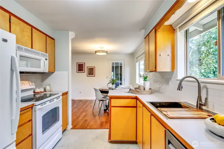 This private oasis sits in the heart of Port Townsend’s vibrant Uptown neighborhood. The single-story home offers a comfortable layout that includes a bonus room ideal for an art studio, media space, or home gym. The kitchen & bathroom have both had updates & commercial grade Speed Queen W/D are top of the line. The fully fenced yard bursts with color in spring & summer & a south facing brick patio is a lovely space to soak up sun. A garage with storage & a scored concrete driveway provide ample space for an RV or boat. Turn-key & easy to maintain, this enchanting & private property invites you to enjoy the best of Uptown living-just a short stroll from restaurants, the farmers market, pickleball, dog park & library.