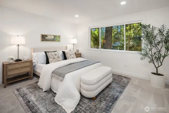 Newly remodeled, this 5 bed, 2.75 bath home offers versatile living. The main level features a bright vaulted living room filled w/ natural light, a dining area with slider to the deck & a stylish kitchen with new SS appliances. All new flooring, carpeting, lighting, & fresh paint inside and out enhance the appeal. The spacious primary suite is complemented by 2 additional bedrooms sharing a full hall bath. On the lower level, enjoy a flexible ADU/MIL setup with a second kitchen, eating area, bonus/media room, 2 bedrooms & slider to the patio. Outside, the large private, fully fenced lot includes RV parking, a storage shed, and generous space for gardening, play, or entertaining. All this just minutes from Beaver Lake, parks, trails & more!