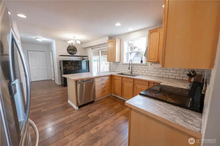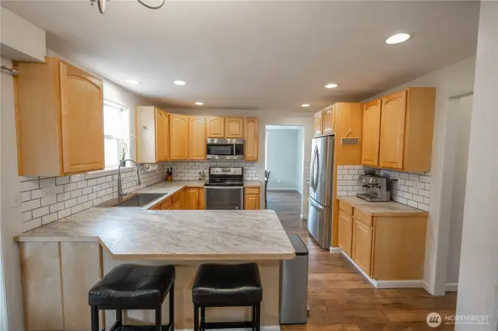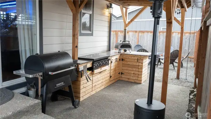 Nestled in the heart of Enumclaw, discover 1800 sqft of living space featuring 3 beds & 2.5 baths, all on a fully fenced lot w/ RV parking! Inside, find a cozy family room w/ gas fireplace, formal dining room, & bright kitchen boasting newer SS appliances, tile backsplash, convenient pantry & eating nook. Don't miss the highly functional bonus room (perfect for home office/4th bedroom) & gorgeous, fully remodeled 1/2 bath w/ ceramic tile flooring, custom tile backsplash, new cabinets & fresh paint. Primary suite offers his-and-hers closets & ensuite bath. Outside, enjoy the spacious fully fenced backyard w/ custom covered patio, outdoor kitchen & fire pit area! Just a couple blocks from downtown Enumclaw. This is one you won't want to miss!