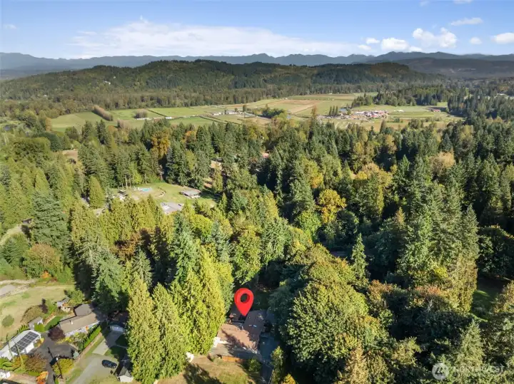 All on one level on a Shy Acre in Snohomish County! Tucked at the end of a private lane. This picture-perfect property has it all—privacy, charm, and space to play! Featuring 4 bedrooms, 1.75 baths, and a newer kitchen that opens to two inviting living areas leading to a spacious backyard. Entertain or unwind on the oversized deck and covered outdoor party cabana or perfect sports watch hangout —your own private retreat! Big Red barn with storage steals the show. Two-bay detached garage, separate carport. Plenty of room for RV parking, fruit trees, pets, or even small livestock. No HOA—just peace, privacy, and endless possibilities!