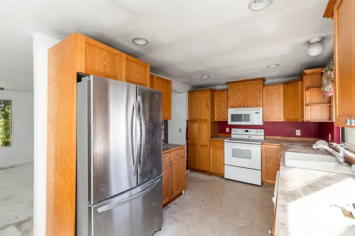 Great opportunity for sweat equity! CK split-level on large .3 acre mostly fenced lot. 3 bedrooms 1.75 baths with a living room on each floor. Kitchen is in good shape with good cabinet and counter space and all appliances included: stainless steel fridge, electric range, & dishwasher. There is vinyl flooring in the kitchen & laundry room, laminate floor in the back bedroom, & carpet in the lower living area. Great blank slate with most other flooring has been removed and walls have been primed. Right in between PSNS/Ferries & Bangor Subbase for easy commuting. Minutes to Silverdale & Bremerton amenities. Great location, great potential!