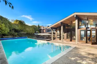 Commanding water views and endless opportunity come together in one of Magnolia’s rare large lots. Overlooking Shilshole Bay, watch boats, tides, and wildlife in the canal or stroll across the Ballard Locks. Distinctive details of this gothic, mid-century home include wood ceilings, spiral staircases, stained glass, skylights, and a grand sunroom opening to a poolside patio. A four-car attached garage, secondary garage, and dual driveways provide exceptional storage and flexibility. Set on a remarkable 18,600 sq ft lot, this historic residence stands poised for its next evolution. Whether you preserve its character, reimagine with modern updates, or create something new under NR2 zoning, this property is a rare canvas of possibility.