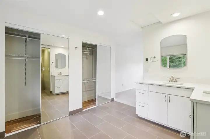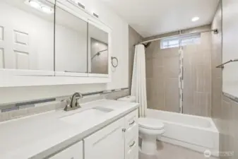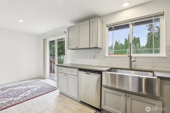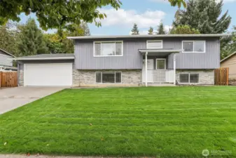 Remodeled Salmon Creek home located in a mature neighborhood known for its larger lots, generous setbacks, and sought-after schools. This split-level features an inviting kitchen, open dining area, and spacious living room. The primary suite offers double closets, a beautiful ensuite with a mud-set step-in shower, heated towel ladder, quartz countertops, and elegant tile flooring. A secondary bedroom and half bath complete the upper level. Daylight basement provides a second living area, two additional bedrooms, a full bath, and a dedicated laundry room with sink and storage. Private deck from the kitchen overlooking the lush yard and mature trees. Thoughtfully remodeled with all appliances included and every detail beautifully finished.