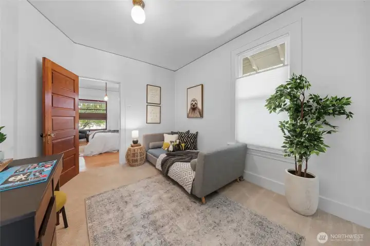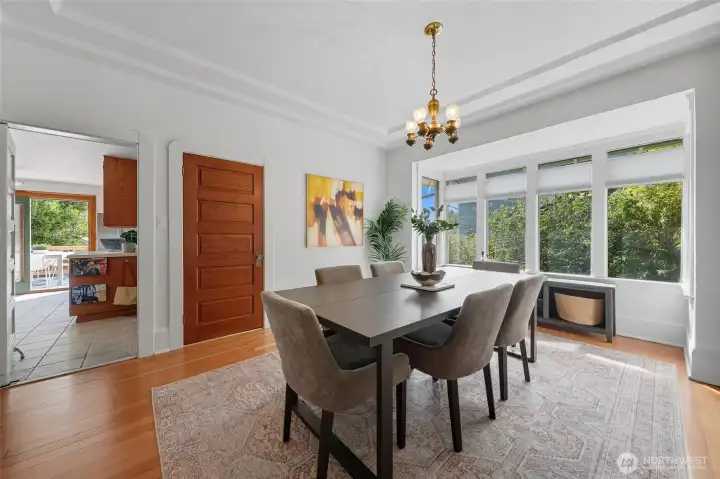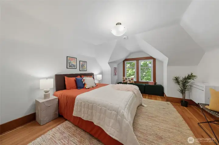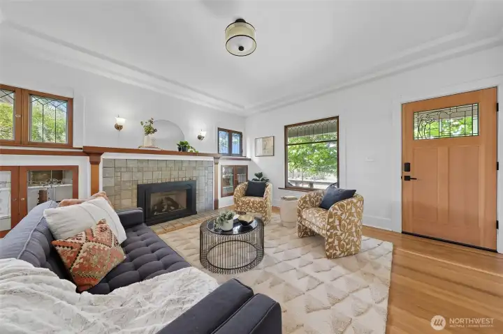 Discover timeless charm in the heart of TangleTown! Just 1 block from vibrant shops & dining this 4-bed, 1.75-bath Craftsman seamlessly blends historic charm w/modern living. Elevated from the street, showcasing original wood floors, stunning leaded windows, rich wood mantle & doors, period lighting, spacious dining rm, & generous kitchen. Modern comforts include NEW deck off the kitchen, SS Appliances, Heat Pump w/ductless mini-splits to keep you cool in summer, updated electrical panel & wiring, exterior paint, & re-insulated attic for year-round coziness. Basement has big bed w/bath, media rm, MIL potential, laundry & storage area. Sunny fenced yard w/garden spcs, a detached garage w/patio area above, great for outdoor entertaining.