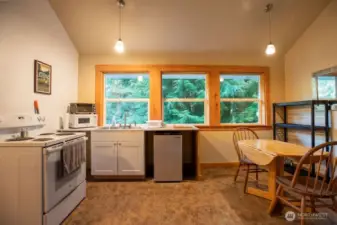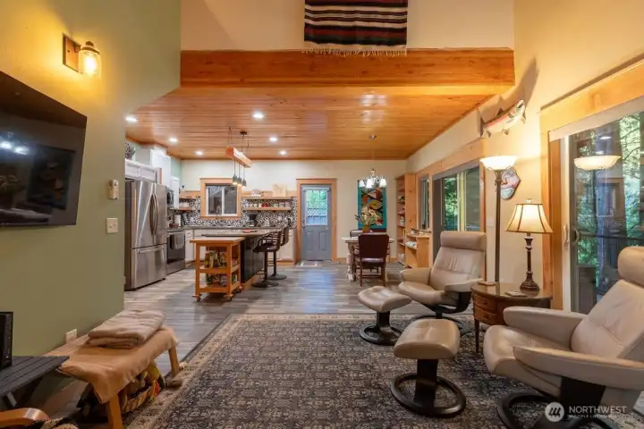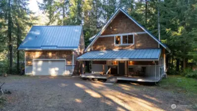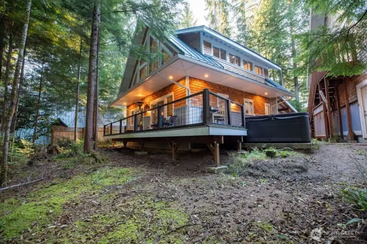 Gorgeous newer home on the Sol Duc River! Enjoy stunning high-bank river views from this beautifully designed residence featuring an upstairs primary suite with ensuite bathroom and a spacious open-concept living area filled with natural light. A detached garage includes a charming mother-in-law studio, perfect for guests or use as a short-term rental. Relax or entertain on the expansive deck with hot tub overlooking the river. just half a block from the boat launch for easy access to fishing, kayaking, and river adventures. The driveway accommodates boats and RVs with ease, making this at the perfect home base for northwest recreation and peaceful living along the Sol Duc.