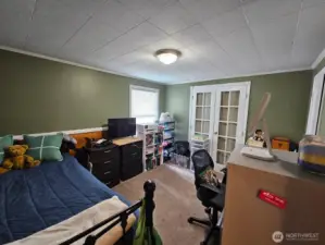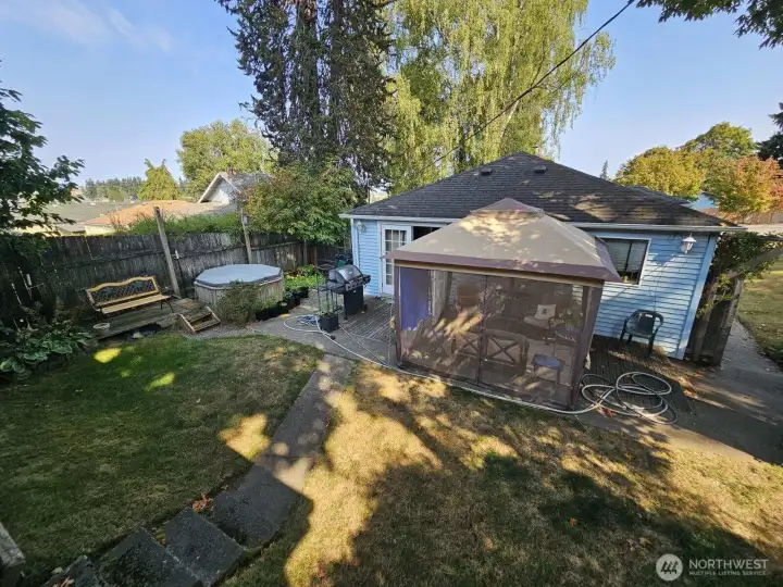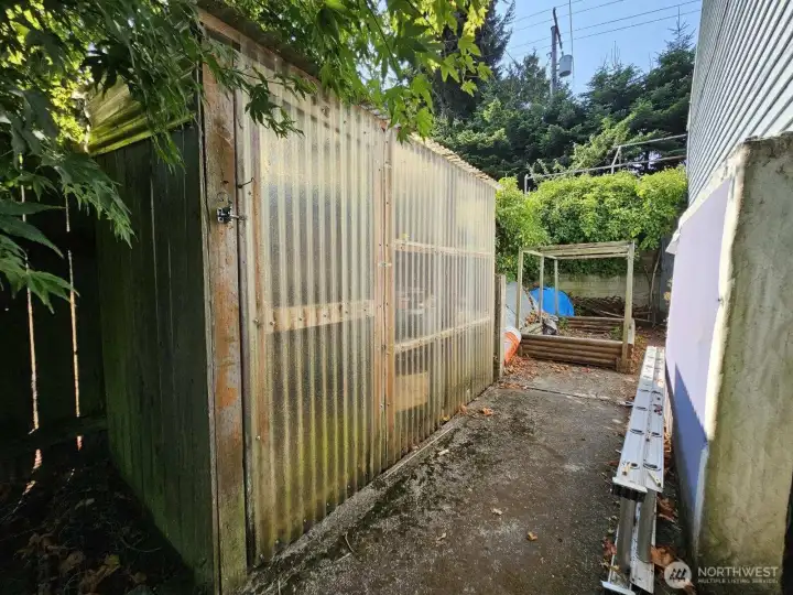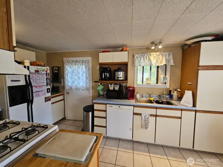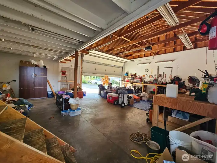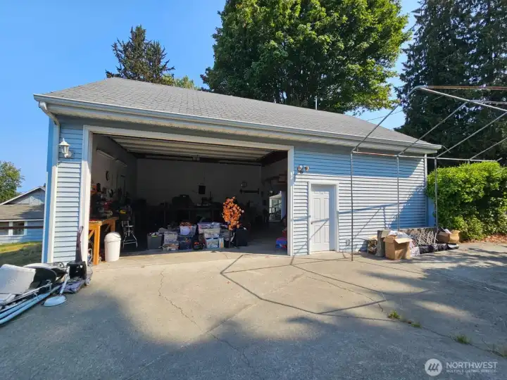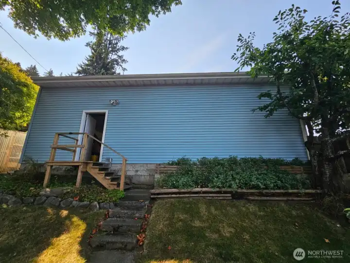 Don't miss this incredible value! 3 bed, 2 bath home with HUGE 850+ sq ft shop conveniently located on desirable dead-end street in the heart of the city. One level living with French doors leading out to completely fenced in back yard. Propane free standing fireplace keeps living areas super toasty! Easy care with mature landscaped yard in front and back. Garden shed, potting shed and loft area in garage all make for extra storage. RV parking by garage off of alley. Partial water views can be enhanced with a little tree trimming in front yard.
