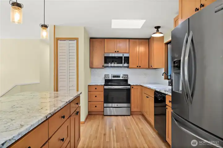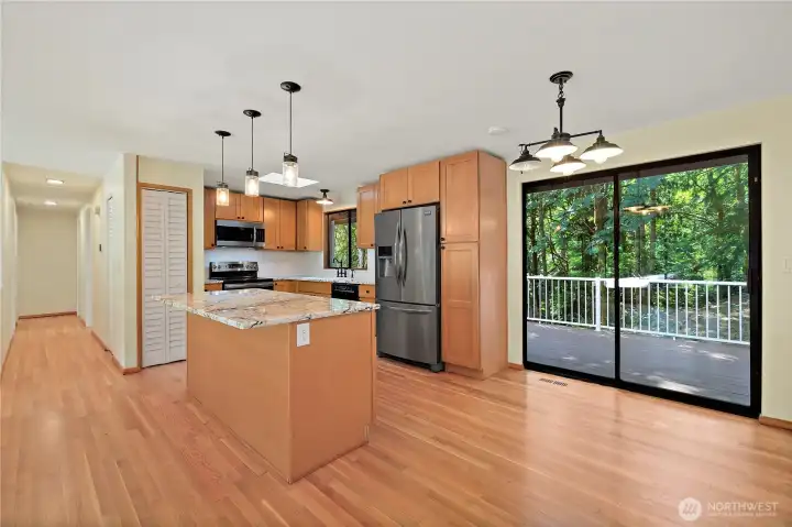 Motivated seller! Nestled in a peaceful, tree-lined neighborhood just minutes from vibrant downtown Issaquah, this beautifully updated 3-bedroom home offers privacy, nature, and modern style. Set on a secluded 3/4-acre lot with a creek below, enjoy outdoor living on the expansive deck. The upgraded kitchen boasts granite counters, stainless steel appliances, an island, and refreshed cabinetry. Throughout, solid oak wood flooring, fresh paint, stylish fixtures, and a renovated primary bath create a warm, move-in-ready space. This home is the perfect blend of tranquil charm and everyday convenience.