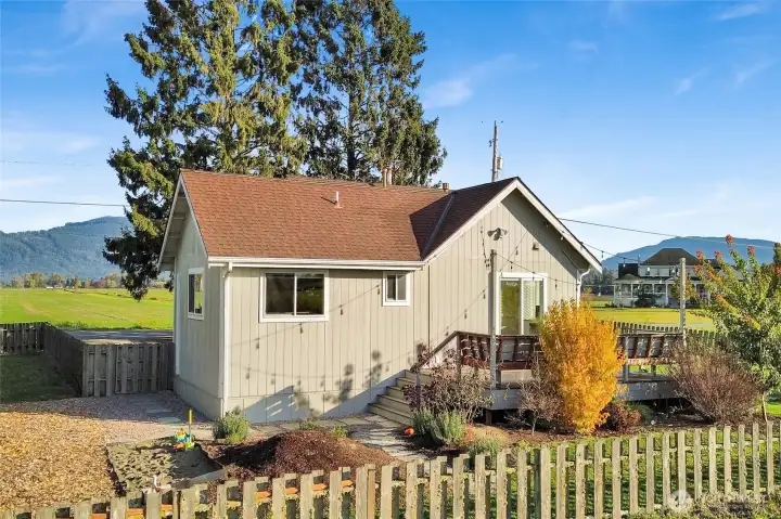Enjoy stunning Mount Baker and island views from this beautifully restored 1937 farmhouse surrounded by peaceful farm fields in sought-after Bow. Full of charm and comfort, it features many updates including a chef’s kitchen, modern bathrooms, and a new ductless mini-split system for efficient heat and A/C—plus a cozy wood-burning stove perfect for Fall evenings. The home lives large with a spacious primary suite, bright secondary bedroom, and a versatile flex space---perfect for an office, family room, or guest area. The fully fenced yard includes a new garden shed, sandbox, and plenty of room to play or relax. A spacious new Trex deck offers space for indoor-outdoor living. A special place where vintage character meets everyday comfort!