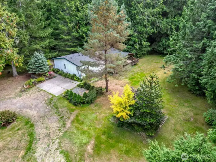 Beautifully wooded retreat on just shy of 10 acres and bordered on 2 sides by DNR land. 3 bed, 2 bath home with open floor plan. Large, covered deck for easy entertaining. Huge, detached shop/garage is insulated and over 1000 sq feet! Laminate flooring, vaulted ceilings, dining room, and split floor plan with primary bedroom on one side and 2 bedrooms on other side of home. Beautiful trails meander through the large, picturesque trees. Close to Crescent Beach. Crescent Water Share included.