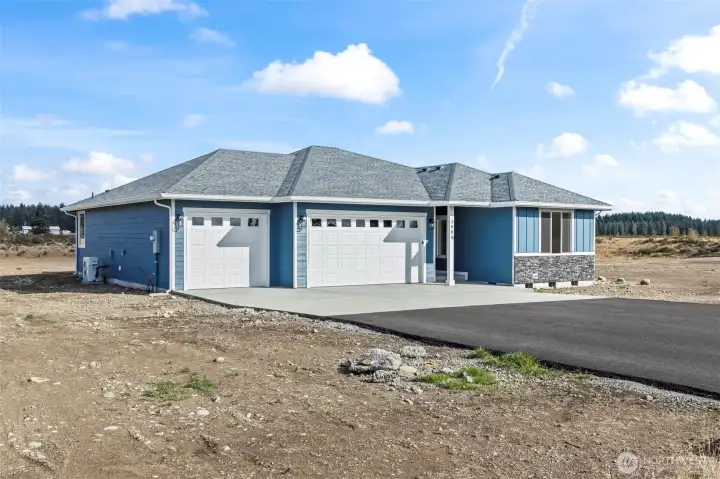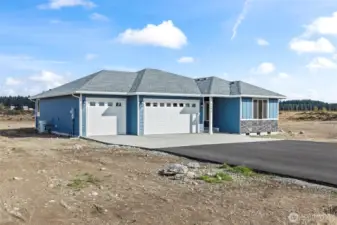 Move in Ready, Fabulous Brand New Tenino Rambler situated on nearly 5 acres surrounded by beautiful pastureland, horses, peace & tranquility plus Mt. Rainier & territorial views. Open concept floor plan, vaulted ceilings, durable LVP flooring & a sleek linear fireplace. Impressive designer Chef’s kitchen w/quartz countertops, stainless appliances, a spacious island, ample cabinetry & walk-in pantry. The light & bright dining area opens to a covered outdoor living space. French doors lead to a luxurious primary suite w/5-piece bath, oversized tile shower, soaking tub & walk-in closet. 3-car fully insulated garage, energy-efficient heat pump w/A/C & high-end finishes throughout—perfect for entertaining, working from home or simply relaxing.