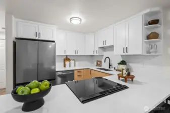 Easy-living in this fully remodeled townhome-style gem home in the coveted Bonnie Brook community w/ two parking spaces! Entertain in style in the luxurious open-concept kitchen w/ brand new custom cabinets, luxurious 3cm quartz countertops, new tile backsplash, and chef-grade SS appliances! Enjoy the spacious open dining and living room with private patio, perfect for hosting or an evening of relaxation. Live large in the spacious bedrooms with plenty of natural light and huge closet space! Easily work from home or conveniently commute from this fantastic location within 1 mile of the 185th St Shoreline light rail station, the new downtown Shoreline development, restaurants, shops, parks, I-5, and more! Truly a must-see!