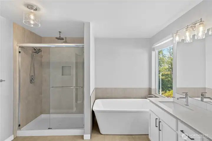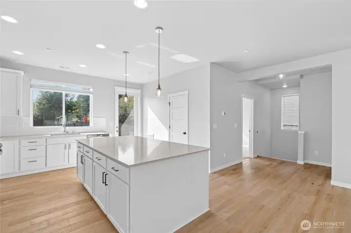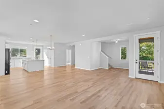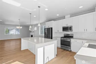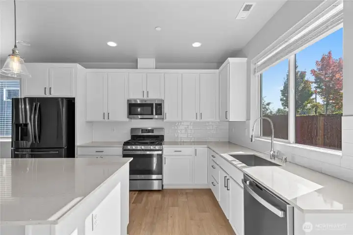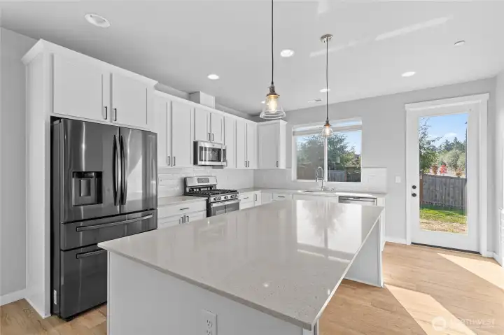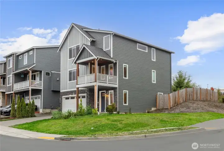 Experience modern living in this beautifully designed 5-bedroom, 3.5-bath home featuring a spacious open-concept layout ideal for today’s lifestyle. The main level showcases a chef’s kitchen with quartz countertops, stainless steel appliances, and an oversized island that flows into the dining room, great room with gas fireplace, and covered deck. Upstairs, enjoy a luxurious primary suite with spa-inspired bath and large walk-in closet. The lower level offers a private guest suite with attached ¾ bath. Built in 2022, this home features high ceilings, central A/C, a 3-car tandem garage, and a generous fenced backyard—offering comfort, style, and tons of space throughout!