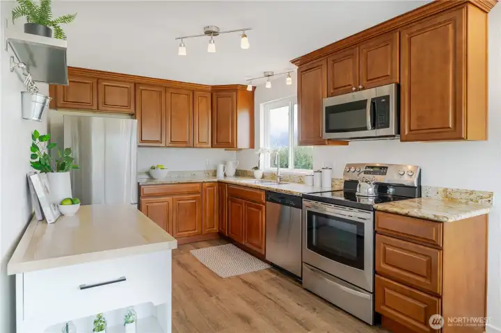 Perched atop desirable Gatewood Hill just a block from Myrtle Reservoir Park, this beautifully updated home enjoys abundant natural light and views of the Puget Sound and Olympics. The open living and dining area with a wood-burning fireplace connects seamlessly to the updated kitchen and baths, with 3 bedrooms on the main level. The lower level features a spacious bedroom, full bath, rec room, and large utility/storage area with walk-out access to the dreamy, fully fenced backyard. Covered patio, attached garage, newer roof, furnace, and panel complete this gem on a picturesque street and generous lot. Welcome home.