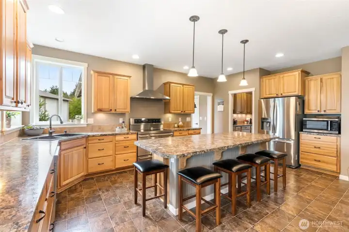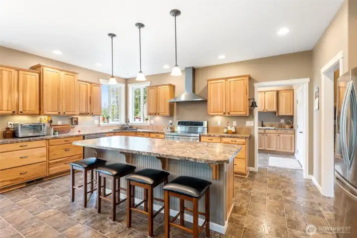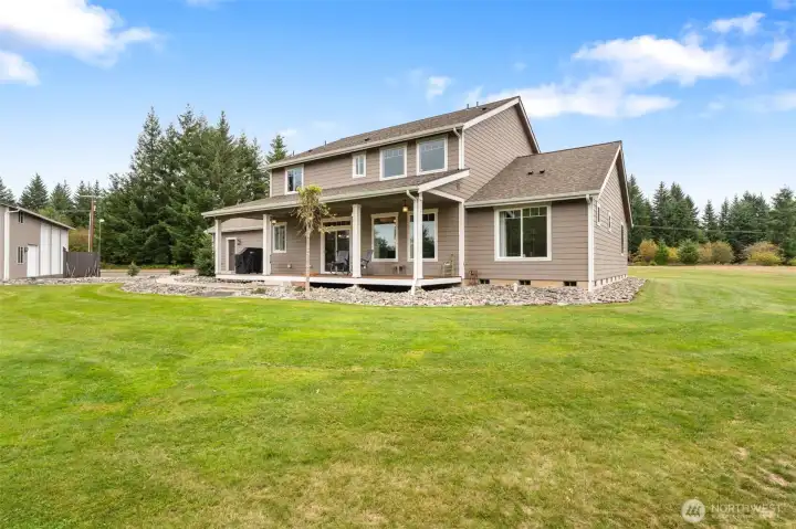 Impressive country estate filled w/ loads of custom upgrades! This impeccably maintained home is 3,400 sq ft offering 9’ ceilings, 4+ bedrooms (all w/ walk-in closets), 3.5 baths, office/den, & multiple living spaces. Chef’s kitchen w/ 5 burner Kenmore range, double ovens, stainless range hood, butler’s & walk-in pantries. Luxurious primary suite w/ 5-piece bath & dual closets. Home is equipped w/ HVAC system w/electrostatic air cleaner & variable speed fan. Dbl walls insulation in key areas for soundproofing. Enjoy a 400’ covered deck, low-maintenance landscaping, 30 GPM well, and heated 882’ garage. Exterior repainted in 24’. Plus, a 60x42 insulated shop w/ loft, bath, laundry, wood stove, & separate 100 AMP service. RV hookup – 50 AMP.
