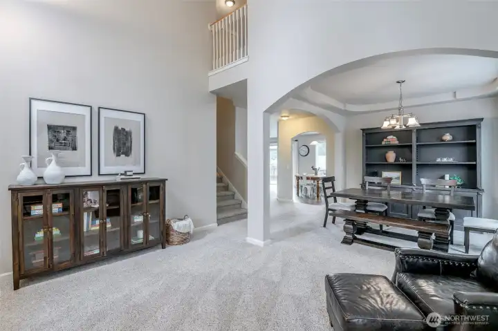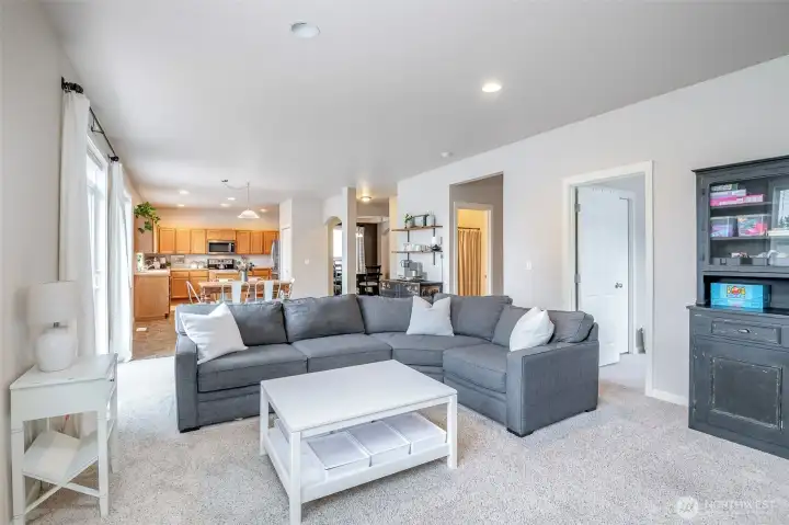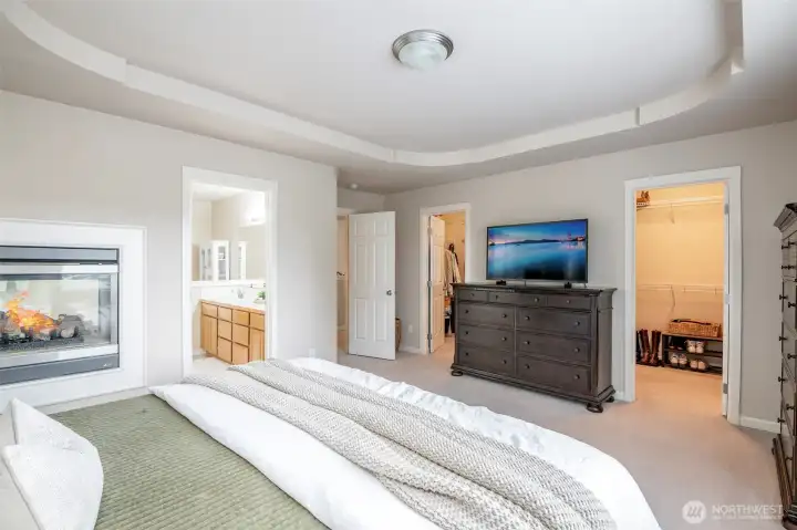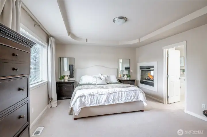 Fall in love with this bright and open home. The expansive primary suite is complete with an oversized walk-in closet & stunning dual-sided fireplace that sets the ambiance in both the bedroom & soaking tub. Upstairs you'll find 3 more great sized bedrooms & full bathroom with double vanity. Another bedroom is located on the main floor as well as a 3/4 bathroom with a shower. To top it off this home has a 3 car garage, sprinkler system, heat pump to keep you cool and warm, a whole home filtration system and water softener system! Located near Meridian Park, top schools, Nisqually Wildlife Refuge, Nisqually Beach Boat Ramp, The William Ives Trail and Hawks Prairie Golf Course. This is a home you must see in person to really appreciate.
