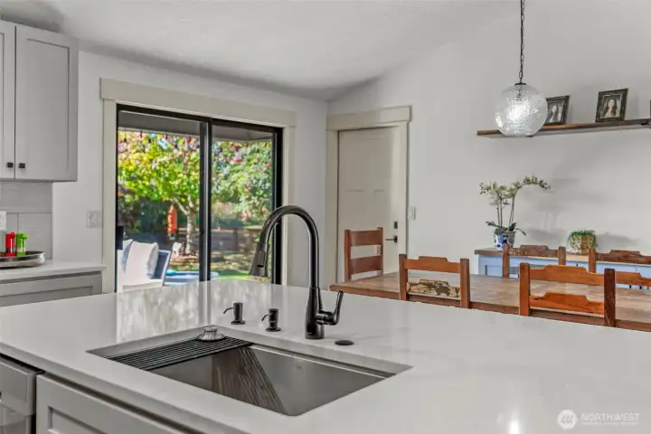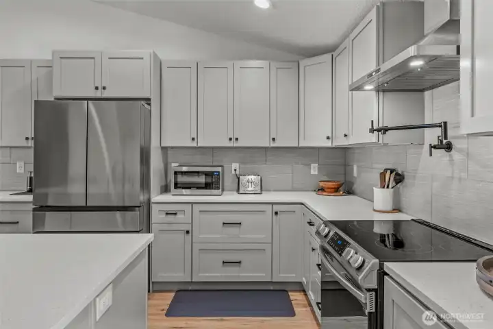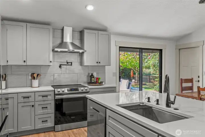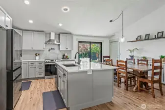 Beautiful one-level in ideal location w/stem-to-stern remodel - gorgeous, move-in ready gem w/all the bells & whistles! Stunning kitchen flanks the open concept dining & great room for easy living & fabulous entertaining; luxury vinyl throughout entire home, upgraded appliance package, new cabinetry, large island w/storage & quartz, dining area boasts built-in buffet plus slider to back patio & expansive yard that will surprise you! Fresh curb appeal inclusive of modern entry & door, exterior paint, landscaping, interior overhaul of paint, fixtures, tiled-in oversized shower, fully updated main bath, sleek & sexy kitchen, eye-catching fireplace & mantle plus HUGE garage w/storage. Get your steps in on the dike or bike to pickleball daily!