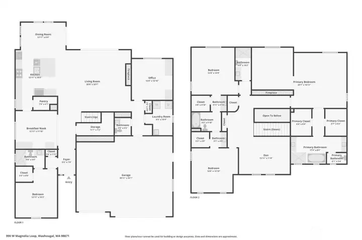 Modern Farmhouse in Magnolia Heights!Highly sought-after Camas Schools, this stunning home epitomizes refined Northwest living. Soaring ceilings, expansive living spaces & seamless indoor-outdoor connection through a triple-panel slider. Gourmet kitchen, w/custom cabinetry, quartz island, GE Café appliances, & luxurious finishes.Main floor office, laundry, & a guest suite. Upstairs, the primary suite is a true sanctuary-retreat room w/fireplace, luxurious spa-inspired ensuite & dual walk-in closets. Loft/media room & 3 additional bedrooms (two with Jack-and-Jill access) Large covered patio, yard, space for future enhancements. With over $130,000 in premium upgrades, every finish has been thoughtfully selected to deliver stand-alone beauty.