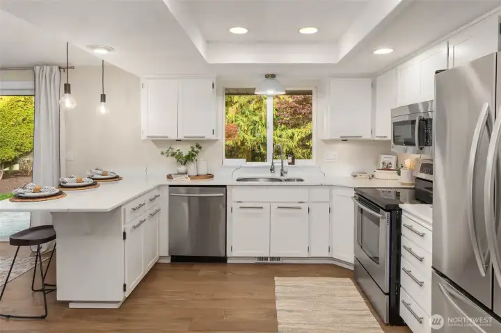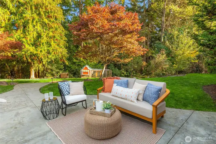 Brimming with natural light and surrounded by lush greenery on over 1/3 of an acre, this inviting home offers privacy and convenience just minutes from downtown Snohomish. The soaring entry opens to bright living/dining areas, while the updated kitchen with designer-style coffee bar overlooks fruit trees, large backyard, and a spacious patio for entertaining. Desirable main-floor primary suite features walk-in closet and ensuite bath, while upstairs boasts 2 bedrooms, new carpet, and a large bonus room w/wet bar. Enjoy central A/C, smart-home tech, a generous garage, covered RV parking, tidy shed, chicken coop, and large driveway. Very near to Snohomish Station for convenient shopping/restaurants. In between Hwy 2 and Hwy 9. Welcome Home!