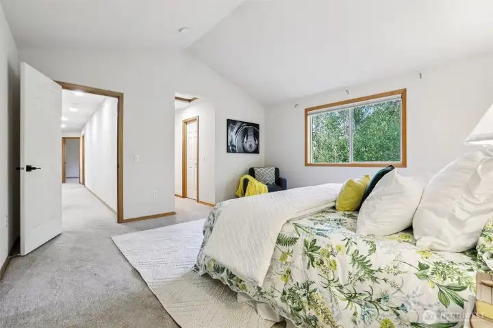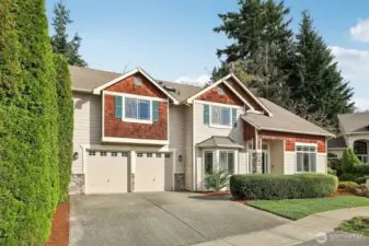 Beautiful move-in ready home nestled on a quiet cul-de-sac. Thoughtful floor plan with perfect balance of formal and informal living spaces. 4 bedrooms, 3 with walk-in closets, plus one oversized with vaulted ceiling. Bright, airy loft bonus room. Formal dining just off the eat-in kitchen. Living room with double-sided fireplace. Family room accented by stone fireplace surround. Spacious kitchen with granite counters, full backsplash, center island, and pantry. Elegant primary suite with 2 closets—1 walk-in—vaulted ceiling, and 5-piece bath with quartz counter. Fully fenced yard with new fencing and easy-care patio. Thoughtfully updated throughout, Excellent location; blocks from elementary school, easy access to I-5 & 405!