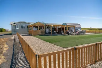 Experience peaceful country living set on two and a half beautiful acres. Enjoy open-concept layout featuring vaulted ceilings, cozy fireplace, and kitchen designed for gatherings with large center island and tons of storage. The expansive covered patio is perfect for entertaining or simply relaxing while taking in the stunning views. The enormous primary suite offers a private retreat, while the property provides ample space for livestock, gardening, or outdoor recreation. Plenty of room for livestock if desired. Quiet and scenic, yet conveniently located just a short 7-minute drive to Crescent Bar on the Columbia River, hiking trails, and fishing spots. The perfect blend of comfort and country living. Furnishings negotiable.
