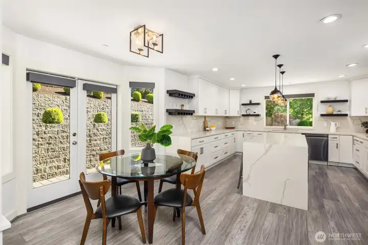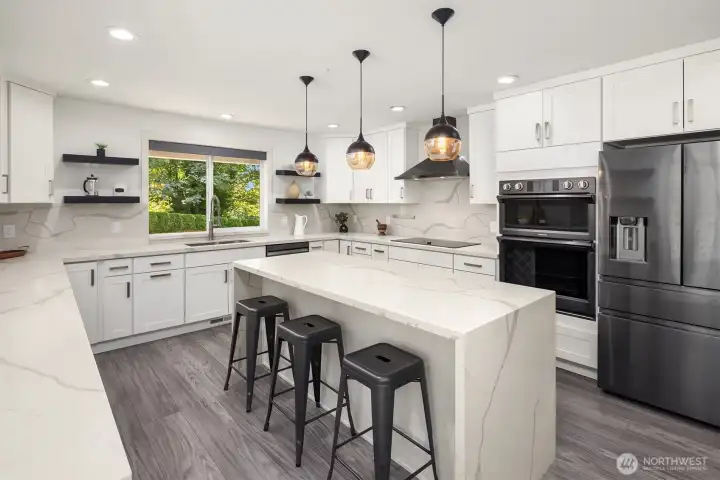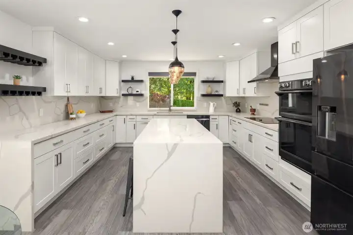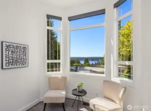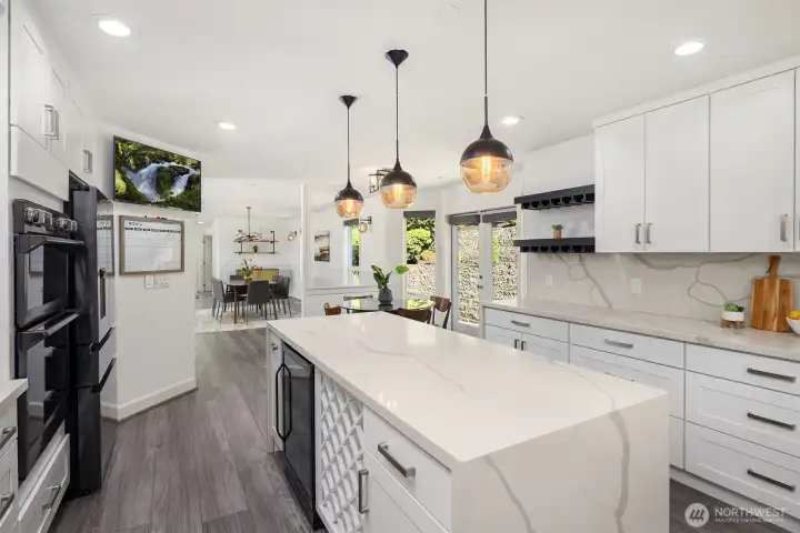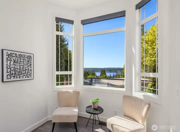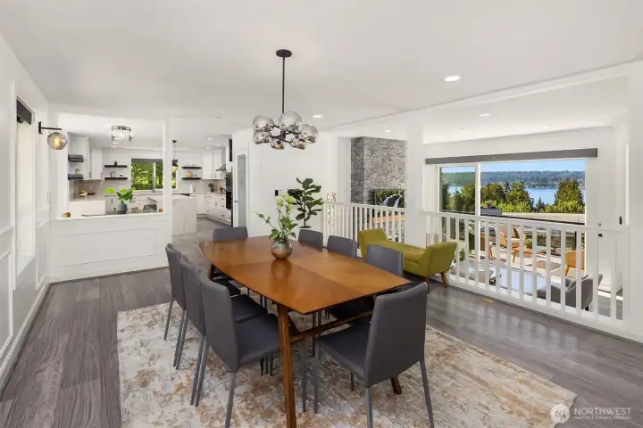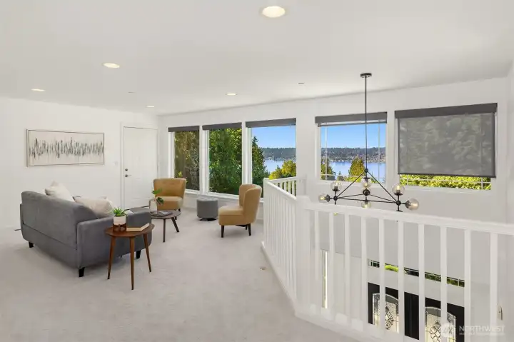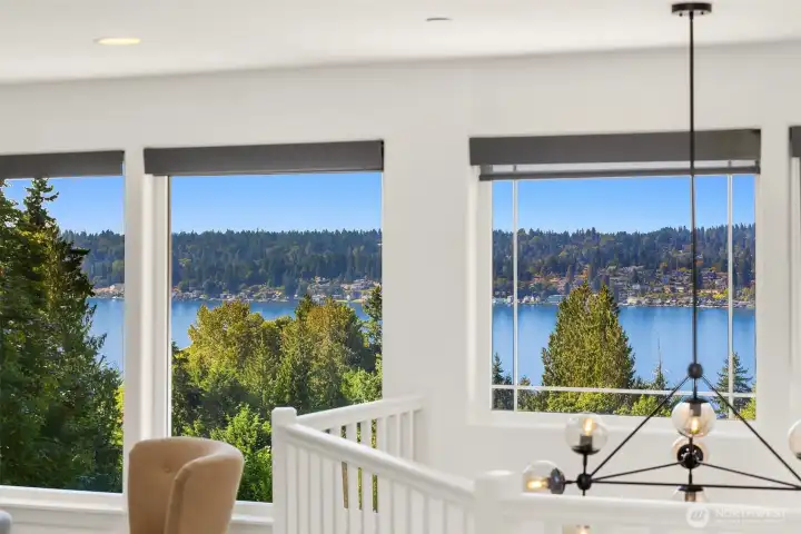 Perched in a peaceful cul-de-sac with unobstructed lake views, this fully remodeled Holmes Point home blends luxury with function. Virtually every surface has been touched—new roof, paint, carpet, kitchen, and spa-inspired baths. Light pours in through expansive windows, framing the views from nearly every room. Multiple decks and a rare flat lawn invite seamless indoor-outdoor living. The main level offers a flexible ADU style space, guest suite, or office with a private entrance. Sought after bedroom layout and loft adds bonus space. Primary suite is a true retreat. A rare combination of serenity, style, and versatility—all minutes to Denny Park, boat launch, the Lodge at St Edwards, Inglewood Golf Club, Juanita, and phenomenal schools.