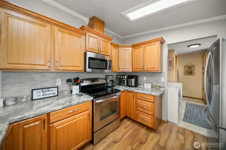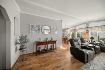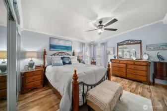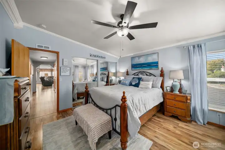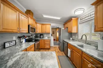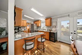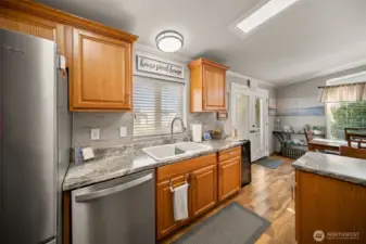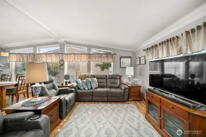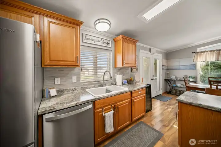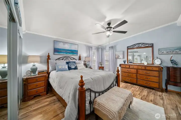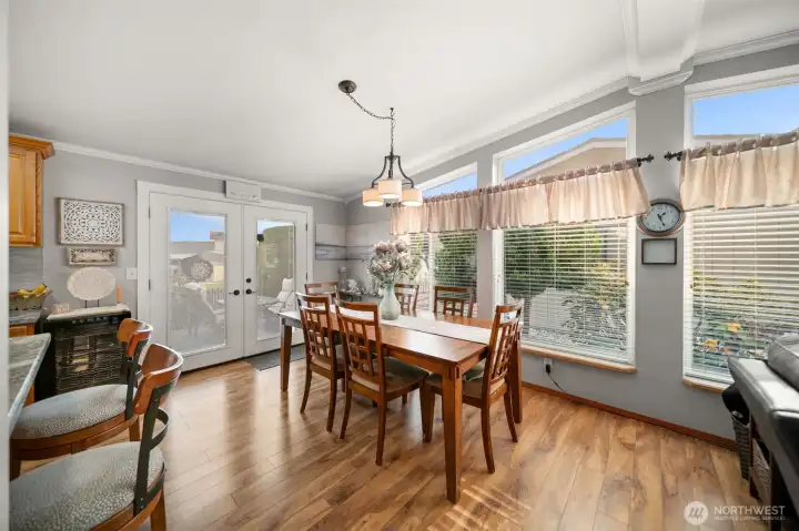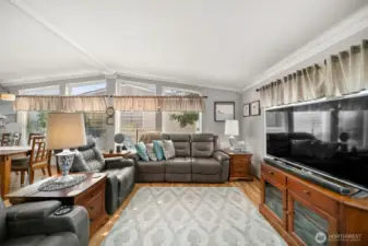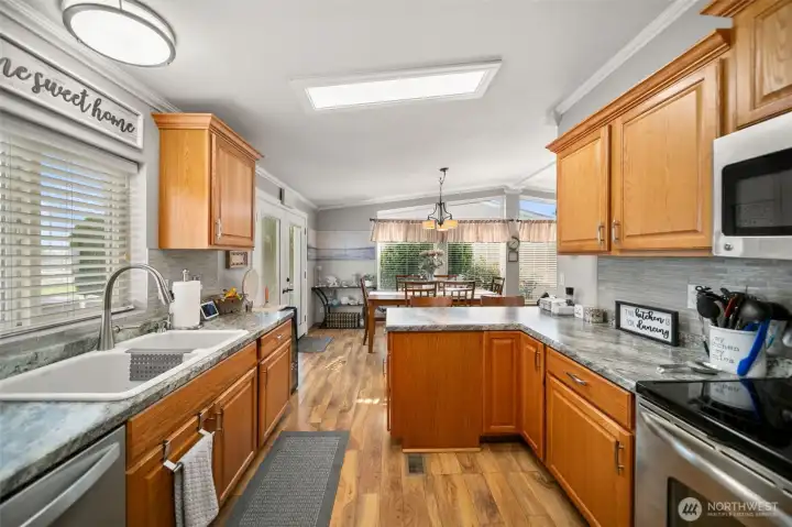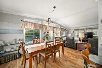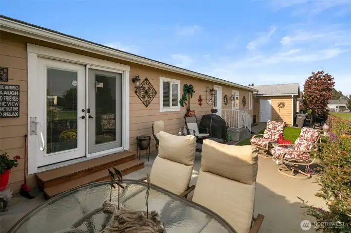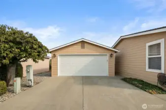Stunning well taken care of home ready for new owner in Meadowridge 55+ Park. Cozy living area opens up to the dining room and kitchen with a spacious outdoor patio. Primary bedroom includes private bathroom, you also have a second bedroom, and open office area that could be utilized as a sitting room, office or craft space. Charming, private sitting area outside to enjoy morning coffee, garden, or games with friends. Oversized garage is great for storage while still having room to park your car. Meadowridge offers a clubhouse and RV parking for residents.