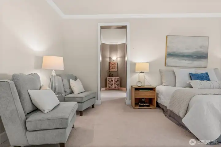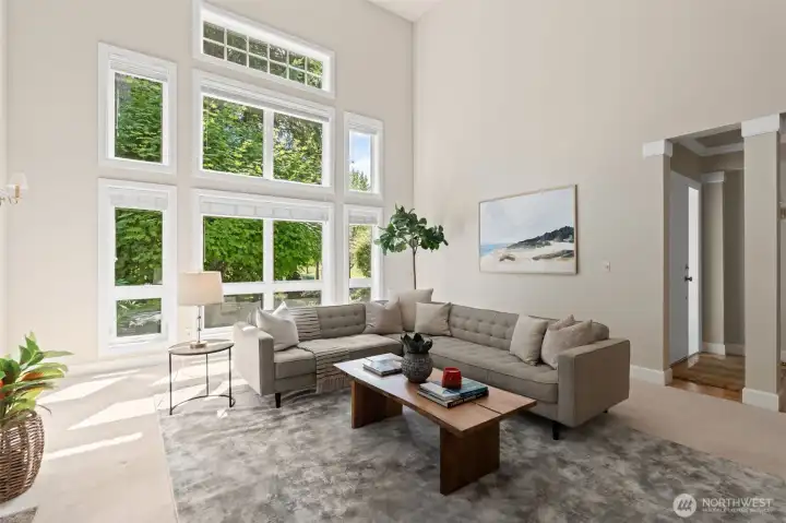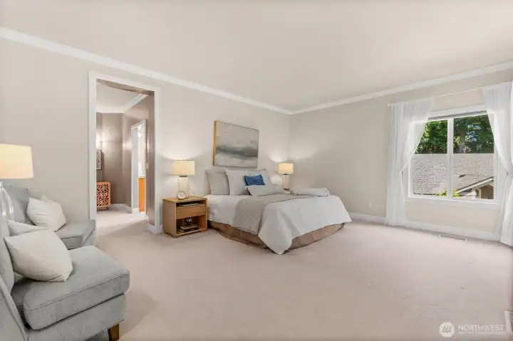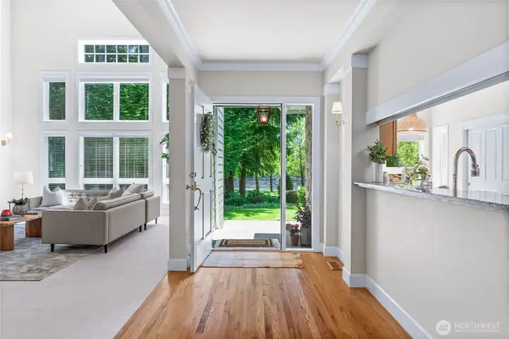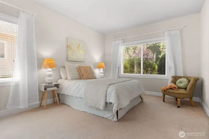 One story in the gated community of Canterwood Golf & Country Club. Traditional warmth meets timeless elegance in this 3 bed, 3 bath home. Soaring ceilings, hardwood floors & expansive windows highlight defined living spaces, including a striking kitchen, dining room & serene primary suite. Each room features an en suite bath, perfect for guests or multi-gen living. Enjoy two decks, lush south-facing gardens & recent upgrades: 2021 roof, newer gutters, 2025 septic drainfield, 2024 exterior paint, 2020 furnace & A/C. Located across from tennis courts & walking distance to pool/clubhouse. Rare one-story living in Canterwood w/ 3-car garage. Tour today!
