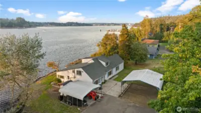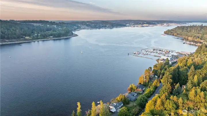 Where water meets wonder, this rare waterfront property evokes the adventurous spirit of Tom Sawyer. Boasting 165 ft of low/no bank frontage & a large boulder bulkhead extending approx. 10 ft beyond neighboring shorelines, it offers exceptional access to the water. Enjoy deep-water protected moorage, a floating dock & private boat ramp for effortless recreation. The 2,588 sq ft home frames mountains & Sinclair Inlet through picture windows, surrounded by mature landscaping with various fruit trees, including figs, plums, grapes, & blueberries & garden space. Covered full-service RV parking, easy access to Hwy 16, Bay St shops & PSNS make this an incomparable opportunity.