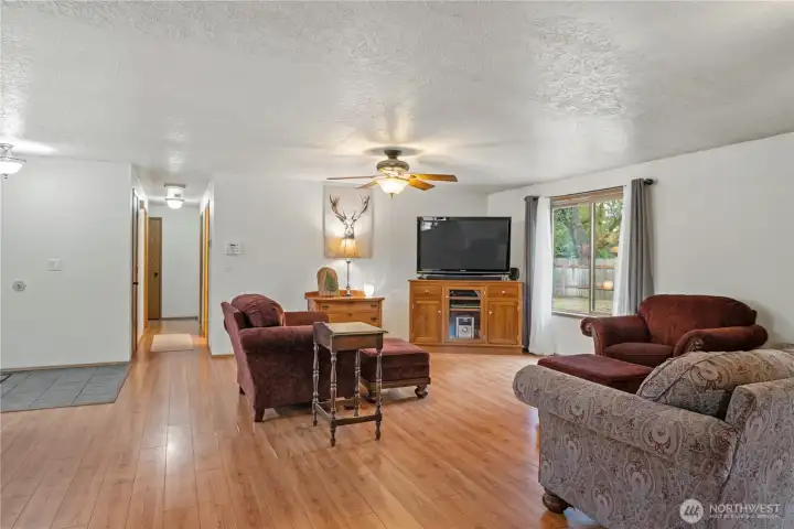 Must-see 3 bed, 2 bath charmer! This 1,442 sq ft home boasts an open layout centered around a kitchen with island seating and a large living room with a wood-burning fireplace. Features include a spacious primary suite with a private 3/4 bath. Located on a corner lot with a large, fenced yard and covered patio. Located in a great neighborhood with lots of parking! Ready for its next owner. Call today to schedule your showing