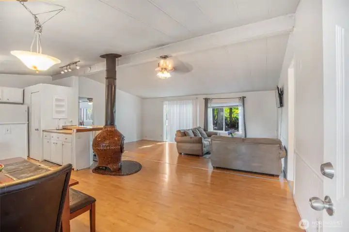 Welcome to Shiloh Park! This beautiful ALL AGES community home offers a roomy open-concept floor plan with warm hardwood floors and bright white cabinetry that creates a fresh, inviting feel. A unique wood stove sits at the heart of the living and kitchen areas, adding cozy charm and character. With three bedrooms and two full baths, there is plenty of space for comfortable living. Enjoy the outdoors with a spacious yard, circular driveway and a relaxing deck, Come see why this home is the perfect blend of comfort and convenience in the welcoming Shiloh Park community!