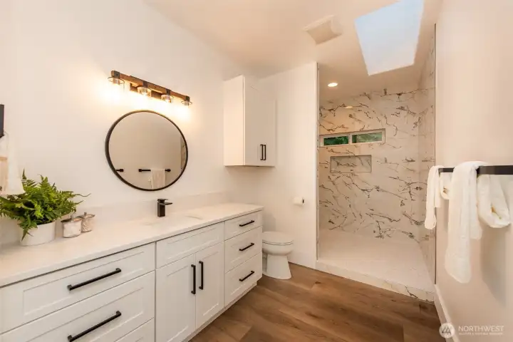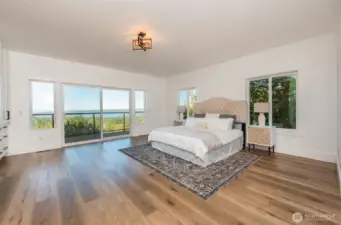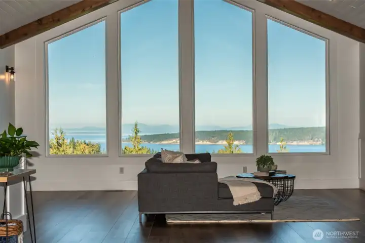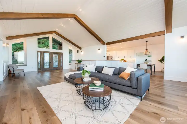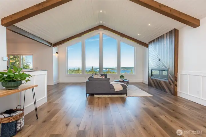Absolutely stunning water view home on 5 private acres. Completely remodeled with spectacular results. Natural light from towering windows help highlight superb craftsmanship on display. Wainscoting, big baseboard trim & painted wood ceilings w/big wood beams provide for a clean natural feel. Large great room, chef's kitchen incl 6 burner Kucht range, 3 bedroom suites incl a large primary w/big views, beautiful electric fireplace with wood surround & a spa-like bathroom. Downstairs is the 3rd bedroom suite, 2 large living rooms & flex room. No steps into the huge garage w epoxy floors. Generator-ready plus central vac & on demand hot water. The home is reached by a private driveway & the combination of views & privacy is what we all covet.