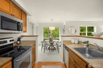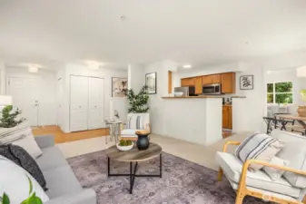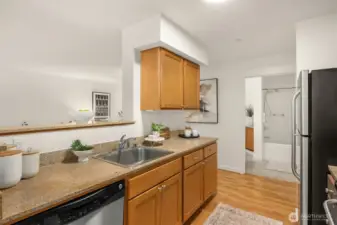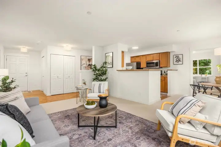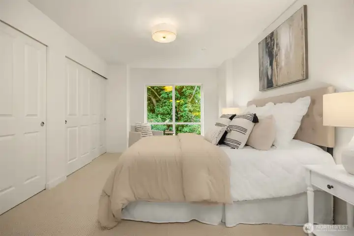 Rare 2-bedroom condo at Island Crossings! Northwest corner location brings afternoon light and peaceful views over 2+ acres of forest bordering 22-acre Sakai Park. Freshly painted with new carpet and lighting, it offers an open floor plan ideal for daily living and entertaining, plus a balcony to enjoy the tranquil outlook. The bedrooms feature double closets, and west-facing windows. Granite counters, stainless appliances, and proximity to shops, transit & island amenities complete the package.