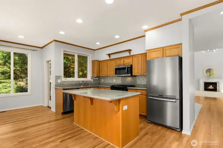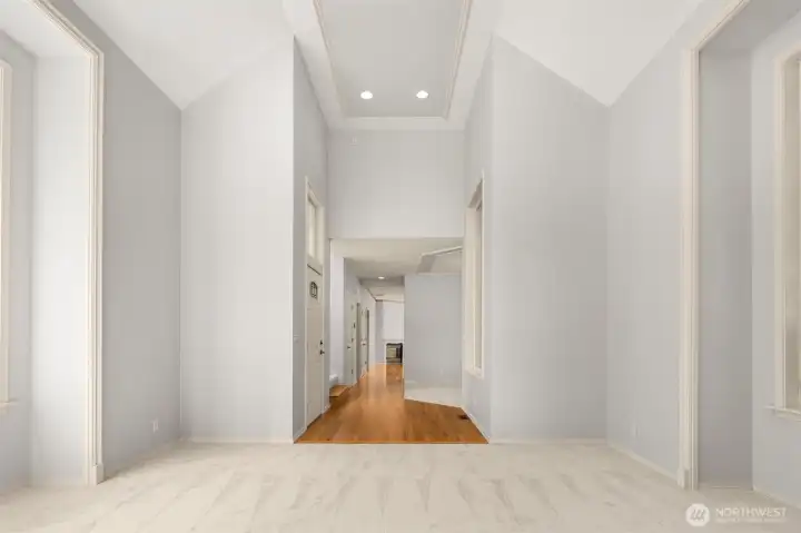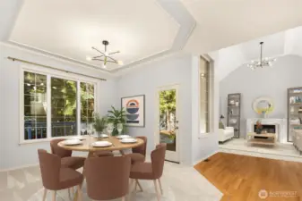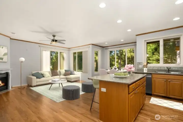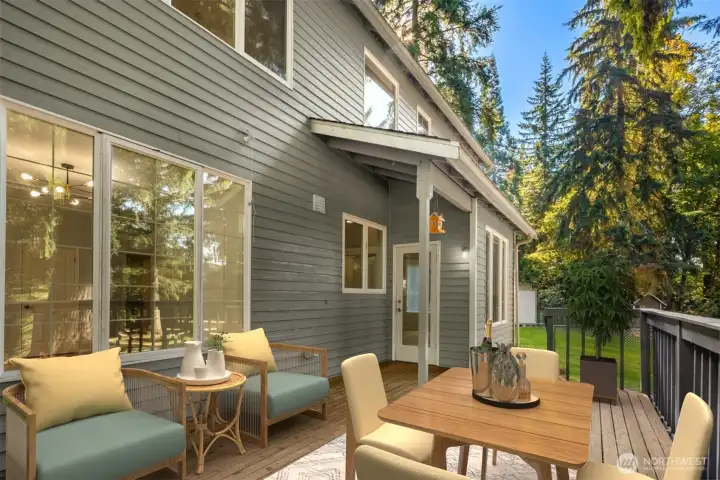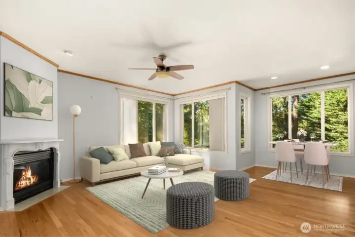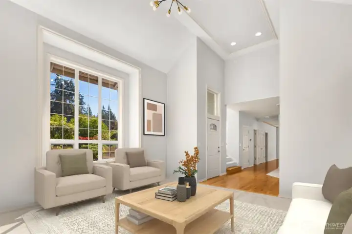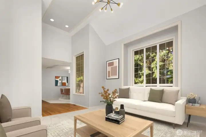 Woodinville - Filled with natural light and offering architectural beauty at every turn, be delighted by the extraordinary! Welcome home to this 4 Bed + Bonus Rm., 1995-Built, 3,000 asf home with large picture windows + voluminous ceilings (9+ ft.) in EVERY room! Just a few blocks from the Tolt Trail (for endless recreation) & down a long, paved driveway, you will find this dream home on a private, easy-care .87 Ac. w/ dining deck & fully- fenced backyard dotted with trees and offering excellent space for entertaining and play. Enjoy all of the extras: 2 gas fireplaces, multiple large walk-in closets, generous use of solid hardwoods throughout, 3-car garage, storage shed, excellent Northshore Schools, incl. East Ridge Elem. Pre-Inspected.