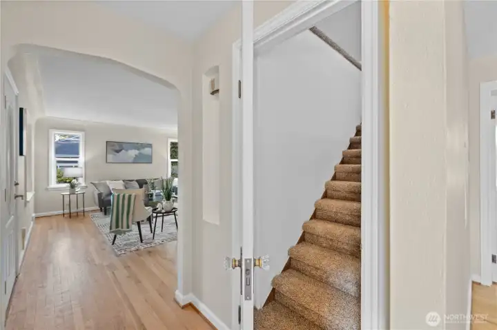 This beautifully refurbished Bothell gem is move-in ready, featuring a new roof, updated electrical, and gleaming refinished hardwood floors. The main-floor primary suite offers a private ¾ bath, while original door hardware, lap-and-plaster walls, and graceful coved ceilings showcase timeless charm. A versatile upstairs loft is perfect for a home office, creative space, or extra storage. The finished lower level includes a bedroom, office, and kitchenette—with its own exterior entrance for added flexibility. Enjoy summer BBQs on the covered stone porch or unwind in the side yard. Just ¼ mile to downtown Bothell and 1 mile to UW Bothell, this home pairs classic character with prime location.