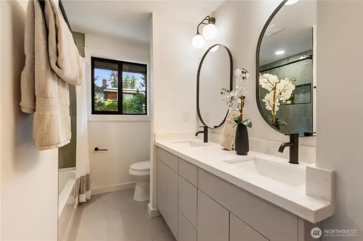 Beautifully updated home perfectly perched on a special corner lot w/territorial views along a serene street. This expansive home has it all—from new systems to stylish finishes & a layout that lives large & is highly functional. Brand-new kitchen w/chic cabs, counters, SS appliances & playful backsplash sets the tone. Dining & open lvg are bright & airy among walls of windows. Spacious primary retreat features lrg walk-in & gorgeous ¾ ensuite—perfect place to unwind. 2 more beds up & full BA complete the ideal plan. Impressive lower w/expansive bonus, 4th bed, full BA & laundry. Freshly landscaped yard, oversized 2-car garage & tons of updates - electrical, plumbing, upgraded windows & more! Easy commuter routes & convenient to amenities.
